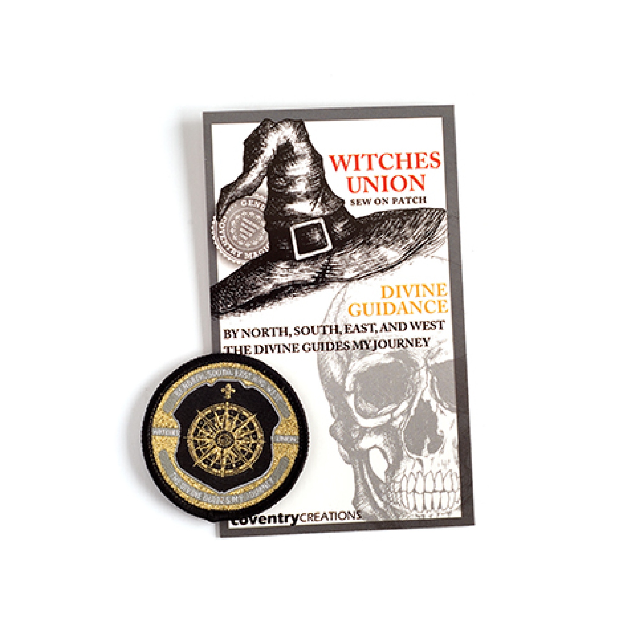 2" diameter embroidered patch. The compass is a symbol that states; no matter how far you journey, the divine will always guide you home. Any magical adept knows life is nothing but a grand journey and divine guidance will never steer you wrong. Any Witches Union member who wears this patch is in tune with their spirit and knows they travel true. "By North, South, East, and West, the Divine guides my journey."